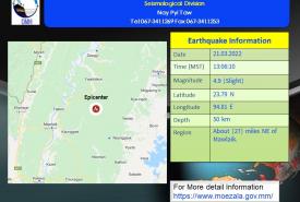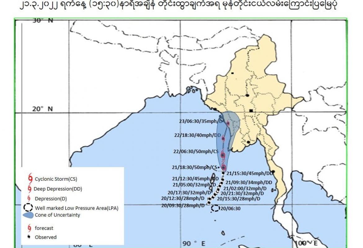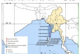 မနက်ဖြန်နံနက်အထိခန့်မှန်းချက်မှာ ပဲခူးတိုင်းဒေသကြီး၊ ရန်ကုန်တိုင်းဒေသကြီး၊ ဧရာဝတီတိုင်း ဒေသကြီး၊ တနင်္သာရီတိုင်းဒေသကြီး၊ ကရင်ပြည်နယ်နှင့် မွန်ပြည်နယ်တို့တွင် နေရာအနှံ့အပြား၊ ရှမ်းပြည်နယ်(တောင်ပိုင်းနှင့် အရှေ့ပိုင်း)၊ ရခိုင်ပြည်နယ်နှင့် ကယားပြည်နယ်တို့တွင် နေရာစိပ်စိပ်၊ နေပြည်တော်၊ မကွေးတိုင်းဒေသကြီးနှင့် ရှမ်းပြည်နယ်(မြောက်ပိုင်း)တို့တွင် နေရာကျဲကျဲနှင့် ကျန်တိုင်း ဒေသကြီးနှင့် ပြည်နယ်တို့တွင် နေရာကွက်ကျား မိုးထစ်ချုန်းရွာပြီး ဧရာဝတီတိုင်းဒေသကြီးတွင် ဒေသအလိုက်နှင့် ပဲခူးတိုင်းဒေသကြီး၊ ရန်ကုန်တိုင်းဒေသကြီး၊ တနင်္သာရီတိုင်းဒေသကြီး၊ ကရင်ပြည်နယ်နှင့် မွန်ပြည်နယ်တို့တွင် နေရာကွက်၍ မိုးကြီးနိုင်သည်။ ရွာရန်ရာနှုန်း(၈၀) ဖြစ်သည်။