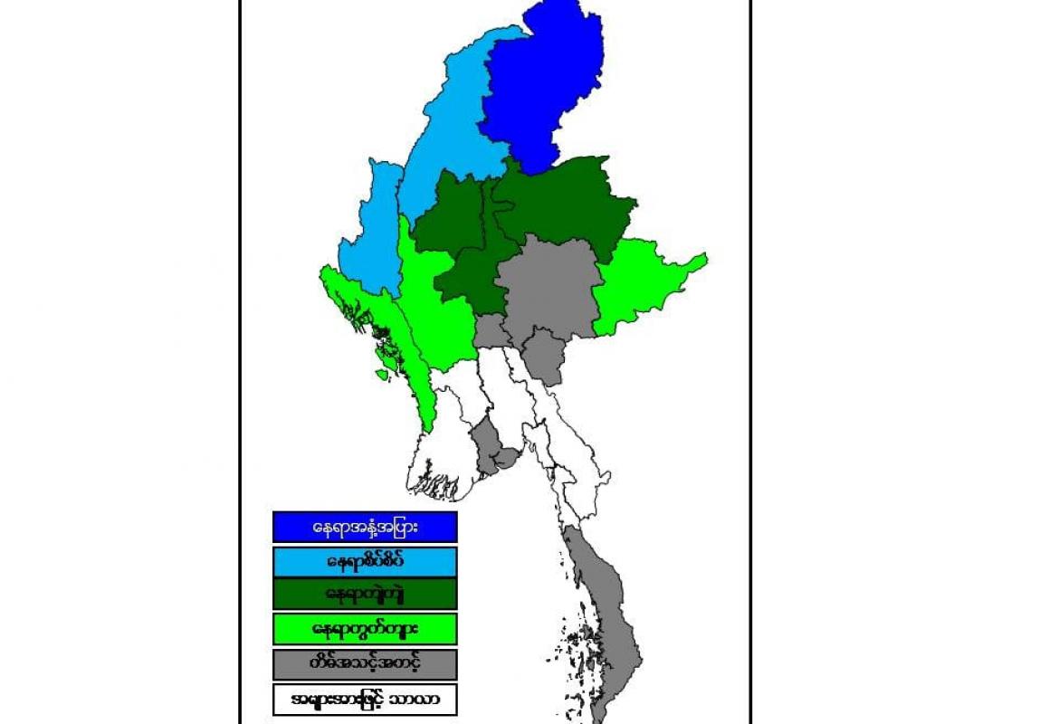 မကွေးတိုင်းဒေသကြီး၊ ရှမ်းပြည်နယ်(အရှေ့ပိုင်း)နှင့် ရခိုင်ပြည်နယ်တို့တွင် နေရာကွက်ကျား မိုးထစ်ချုန်း ရွာမည်