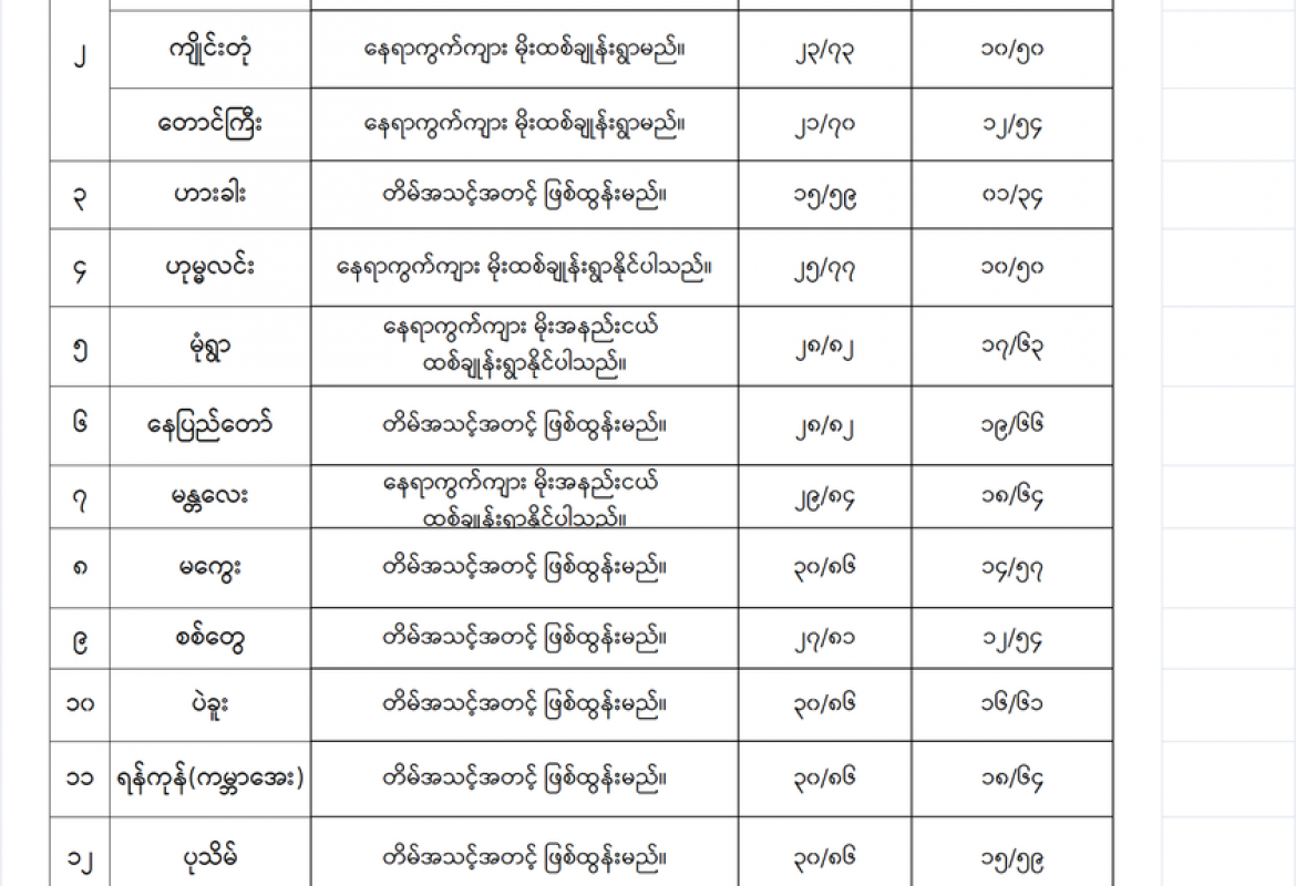 စစ်ကိုင်းတိုင်းဒေသကြီးအထက်ပိုင်း၊ မန္တလေးတိုင်းဒေသကြီး၊ ကချင်ပြည်နယ်နှင့် ရှမ်းပြည်နယ် (မြောက်ပိုင်း)တို့တွင် နေရာကွက်ကျား မိုးဆက်လက်ရွာနိုင်