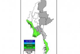 စစ်ကိုင်းတိုင်းဒေသကြီး၊ ကချင်ပြည်နယ်၊ ချင်းပြည်နယ်နှင့် ရခိုင်ပြည်နယ်တို့တွင် နေရာကွက်ကျား မိုးထစ်ချုန်းရွာနိုင်