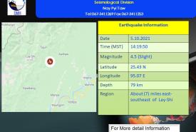 အင်အား ရစ်(ခ်)တာစကေး (၄.၅)အဆင့်ရှိ မြေငလျင်တစ်ခု လှုပ်ရှား