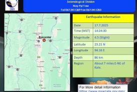 အင်အားရစ်(ခ်)တာ စကေး (၄.၅) အဆင့်ရှိ အင်အားအနည်းငယ်ရှိသော မြေငလျင်တစ်ခု လှုပ်ရှား