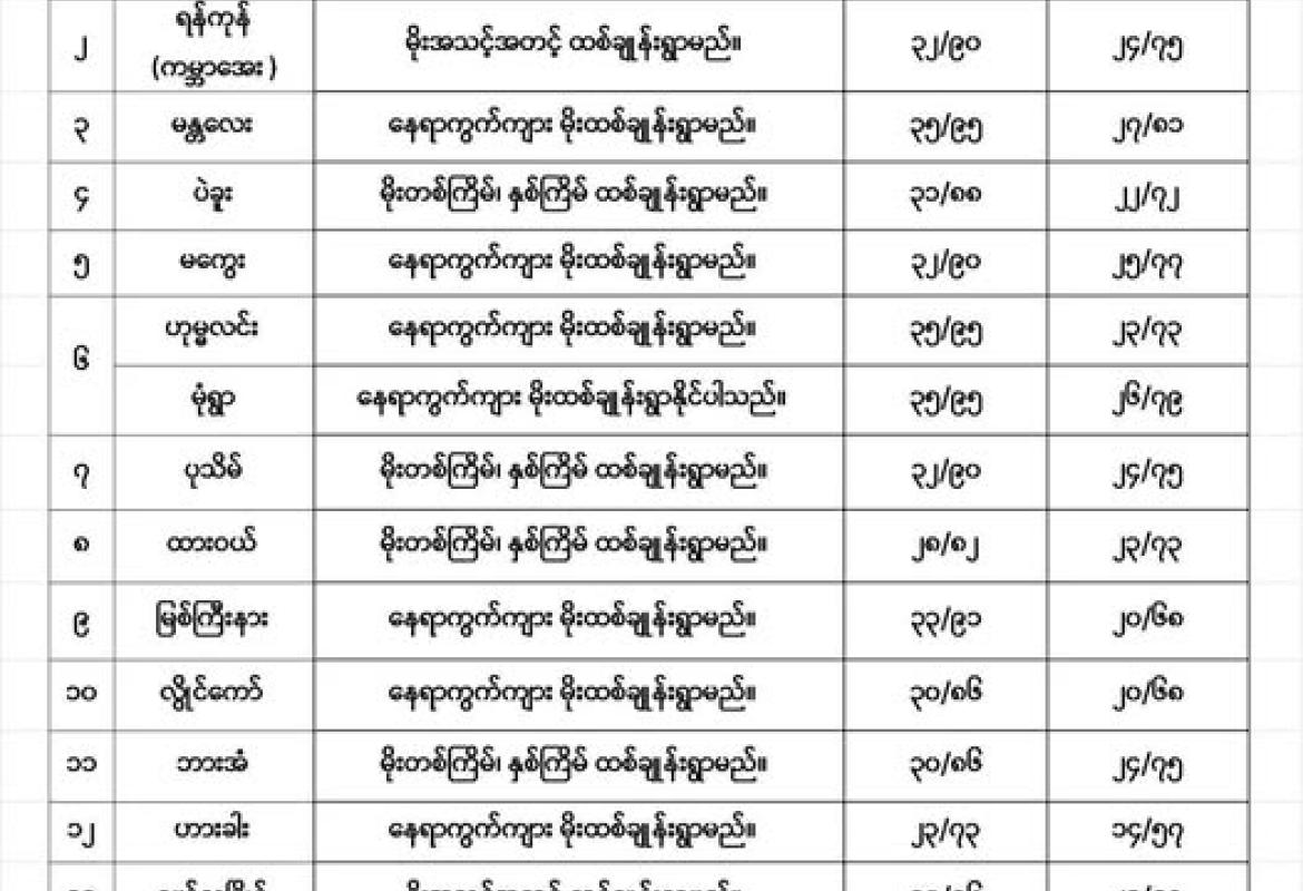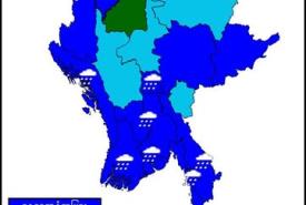 ရန်ကုန်တိုင်းဒေသကြီး၊ ပဲခူးတိုင်းဒေသကြီး၊ ဧရာဝတီတိုင်းဒေသကြီး၊ တနင်္သာရီတိုင်းဒေသကြီး၊ ကရင်ပြည်နယ်နှင့် မွန်ပြည်နယ်တို့တွင် မိုးပိုလာမည်