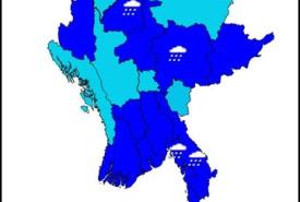 ရန်ကုန်တိုင်းဒေသကြီး၊ ပဲခူးတိုင်းဒေသကြီး၊ ဧရာဝတီတိုင်းဒေသကြီး၊ တနင်္သာရီတိုင်းဒေသကြီး၊ ကရင်ပြည်နယ်၊ ချင်းပြည်နယ်၊ ရခိုင်ပြည်နယ်နှင့် မွန်ပြည်နယ်တို့တွင် မိုးပိုလာမည်
