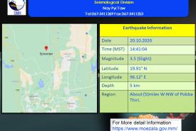 ပုဗ္ဗသီရိမြို့အနီး ၃ ဒသမ ၅ အဆင့်ရှိမြေငလျင်တစ်ခု လှုပ်ရှား