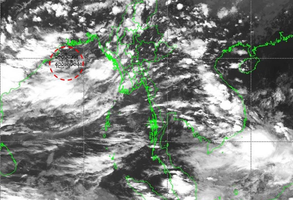 ယနေ့မြန်မာစံတော်ချိန် (၀၆:၃၀)နာရီအချိန် တိုင်းထွာချက်များအရ ဘင်္ဂလား ပင်လယ်အော်အနောက်မြောက်ပိုင်းနှင့် ယင်းနှင့်စပ်ဆက်လျက်ရှိသော အိန္ဒိယနိုင်ငံ၊ ဩရိဿပြည်နယ်ကမ်းခြေ တို့တွင် ဖြစ်ပေါ်နေသော လေဖိအားနည်းရပ်ဝန်းသည် ဆက်လက်တည်ရှိနေပါသည်။ ဘင်္ဂလားပင်လယ်အော်မြောက်ပိုင်း တွင် တိမ်အသင့်အတင့် ဖြစ်ထွန်းနေပါသည်။
