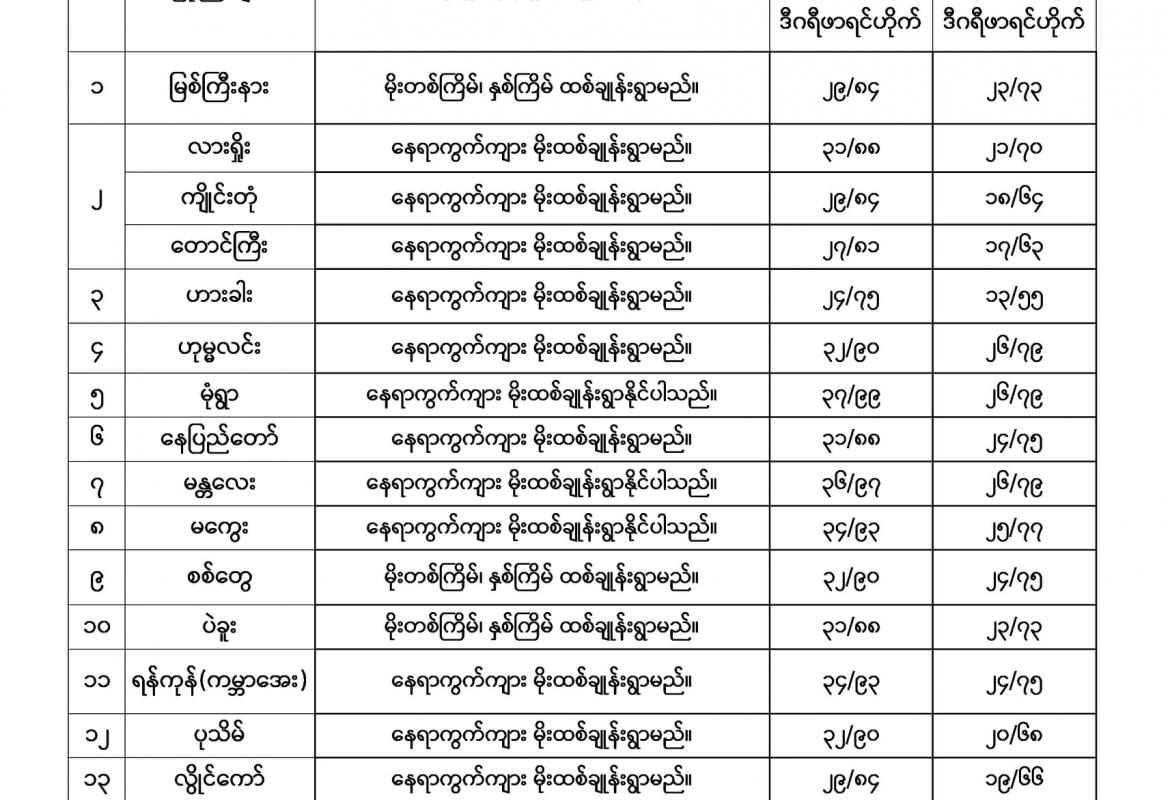 မိုးလေဝသနှင့် ဇလဗေဒညွှန်ကြားမှုဦးစီးဌာနမှ (၂၇.၉.၂၀၂၀) ရက်နေ့ နံနက်(ဝ၆:၃၀)နာရီအချိန်တွင် တိုင်းတာရရှိသော မြစ်ရေအခြေအနေများ