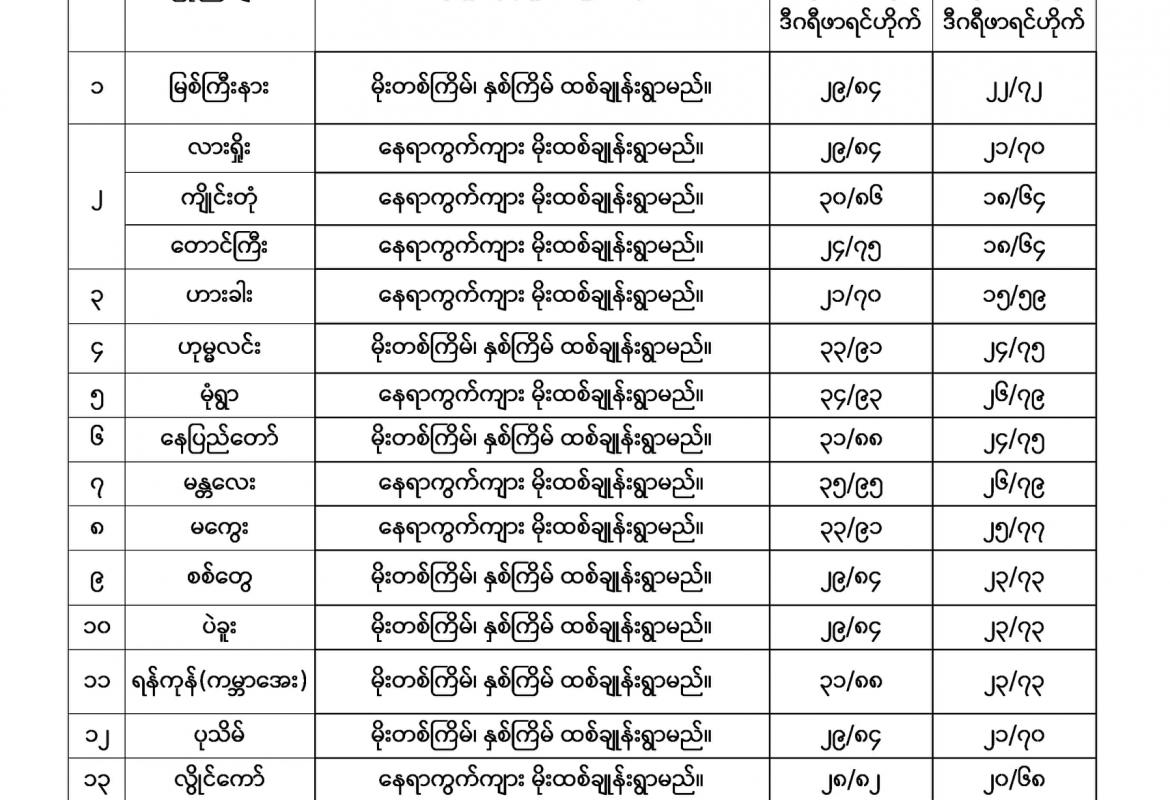 ဘင်္ဂလားပင်လယ်အော်အခြေအနေ။ ယနေ့မြန်မာစံတော်ချိန် (၁၈:၃၀)နာရီအချိန် တိုင်းထွာချက်များအရ ဘင်္ဂလားပင်လယ်အော်အ နောက်မြောက်ပိုင်းနှင့် ယင်းနှင့်ဆက်စပ်လျက်ရှိသော အိန္ဒိယနိုင်ငံ၊ ဩရိဿပြည် နယ်မြောက်ပိုင်းကမ်းခြေတို့တွင် ဖြစ်ပေါ်နေသော လေဖိအားနည်းရပ်ဝန်းသည် ဆက်လက်တည်ရှိနေပါသည်။