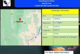 ရစ်(ခ်)တာစကေး (၃ ဒသမ ၇)အဆင့်ရှိ အင်အားအနည်းငယ်ရှိသော မြေငလျင်တစ်ခု လှုပ်ရှား