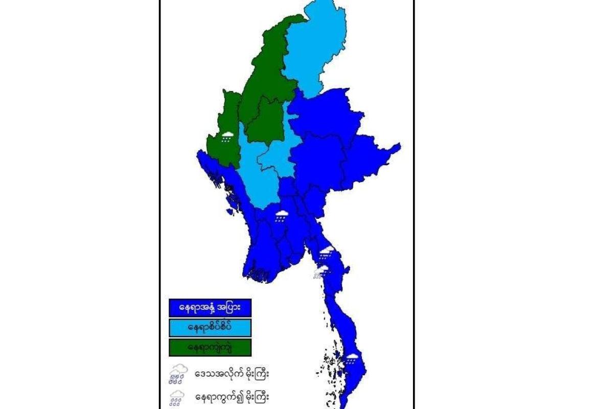 တနင်္သာရီတိုင်းဒေသကြီး၊ ရှမ်းပြည်နယ်(တောင်ပိုင်း)နှင့် ကရင်ပြည်နယ်တို့တွင် နေရာကွက်၍ မိုးကြီးနိုင်