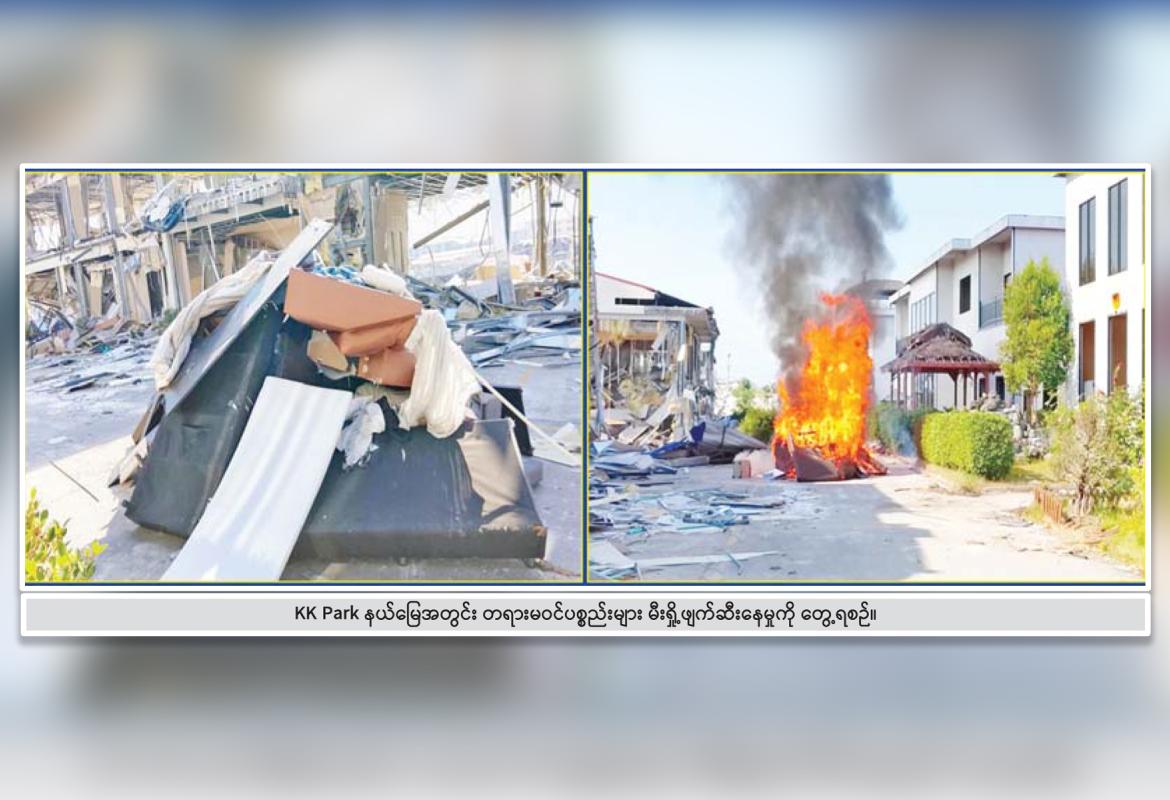 KK Park နယ်မြေ၊ ရွှေကုက္ကိုလ်နယ်မြေအတွင်းရှိ အွန်လိုင်းလိမ်လည်လောင်းကစားမှုကျူးလွန်ရာတွင် အသုံးပြုသည့်ပစ္စည်းများအား မီးရှို့ဖျက်ဆီး၊ မြဝတီမြို့အတွင်း တရားမဝင်ပြည်ပနိုင်ငံသားများနှင့် တရားမဝင်ကုန်ပစ္စည်းများ ဖမ်းဆီးရမိ