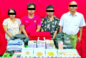 လသာမြို့နယ် မဟာဗန္ဓုလလမ်းရှိ ရွှေဇင်အာမခံရွှေဆိုင်မှ ရွှေထည်ပစ္စည်းများနှင့် ငွေကျပ်သိန်း ၁၀၃၀ ကို သေနတ်ဖြင့်ခြိမ်းခြောက်၍ လုယက်ယူဆောင်ခဲ့သူများ ဖော်ထုတ်ဖမ်းဆီးရမိ