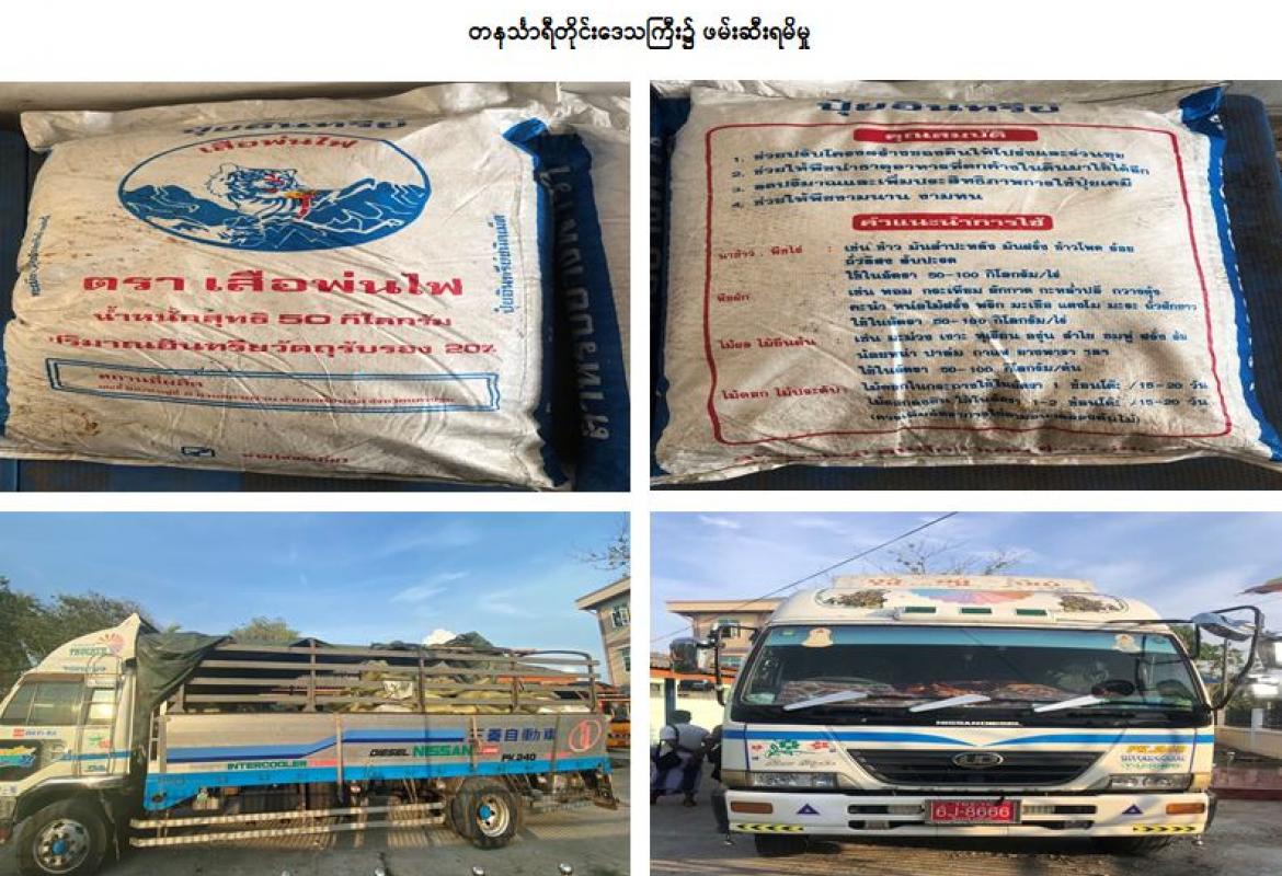 တရားမဝင်ကျွန်းသစ်၊ လူသုံးကုန်ပစ္စည်းများ၊ စားသောက်ကုန်ပစ္စည်းများ၊ ယာဉ်အပိုပစ္စည်းများနှင့် မော်တော်ယာဉ်များ ဖမ်းဆီးရမိ
