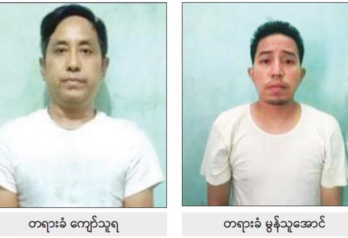 ဧရာဝတီတိုင်းဒေသကြီး မြန်အောင်မြို့နယ်အတွင်း အပြစ်မဲ့ပြည်သူများအား လုပ်ကြံသတ်ဖြတ်လျက်ရှိသည့် အကြမ်းဖက်သမားများနှင့် ဆက်သွယ်ချိတ်ဆက် ပူးပေါင်းပါဝင်သောတရားခံများကို ဖမ်းဆီးရမိ