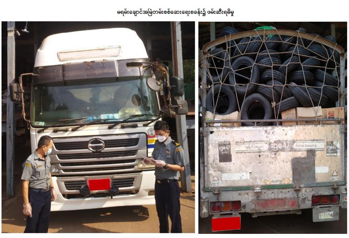 တရားမဝင် သစ်မျိုးစုံနှင့် မော်တော်ကားတာယာများ ဖမ်းဆီးရမိ