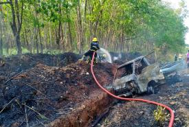 ရေး-မော်လမြိုင် ကားလမ်းပေါ်တွင် ရာဘာတင်ကားတစ်စီး မီးလောင်မှုဖြစ်ပွား