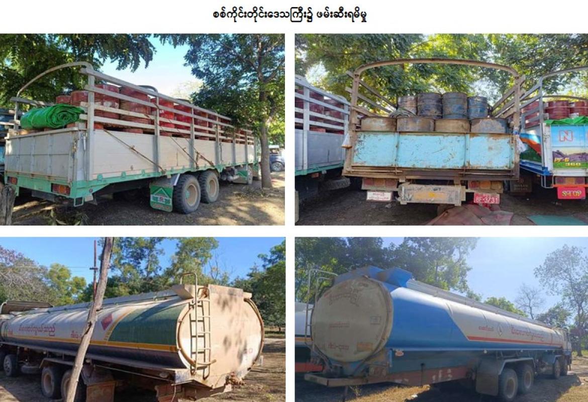 တရားမဝင် သစ်မျိုးစုံ၊ စက်သုံးဆီများ၊ လုပ်ငန်းသုံးပစ္စည်းများ၊ လိုင်စင်မဲ့ မော်တော်ဆိုင်ကယ်များနှင့် မော်တော်ယာဉ်များ ဖမ်းဆီးရမိ