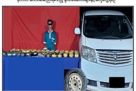 မူးယစ်ဆေးဝါး တားဆီးနှိမ်နင်းရေးရဲတပ်ဖွဲ့မှ တပ်ဖွဲ့ဝင်များသည် မေ ၃၁ ရက် ညနေပိုင်းတွင် အင်းတော်မြို့နယ်၊ ရွှေဘို-မြစ်ကြီးနားသွားကားလမ်း၊ နဘားပူးပေါင်းစစ်ဆေးရေးဂိတ်တွင် ..............