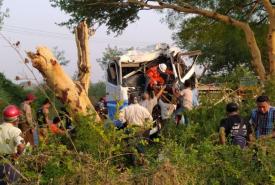 စစ်ကိုင်းမြို့နယ်တွင် ဆီဘောက်ဆာယာဉ် အရှိန်မထိန်းနိုင်ဘဲ လမ်းဘေး သစ်ပင်ဝင်တိုက်