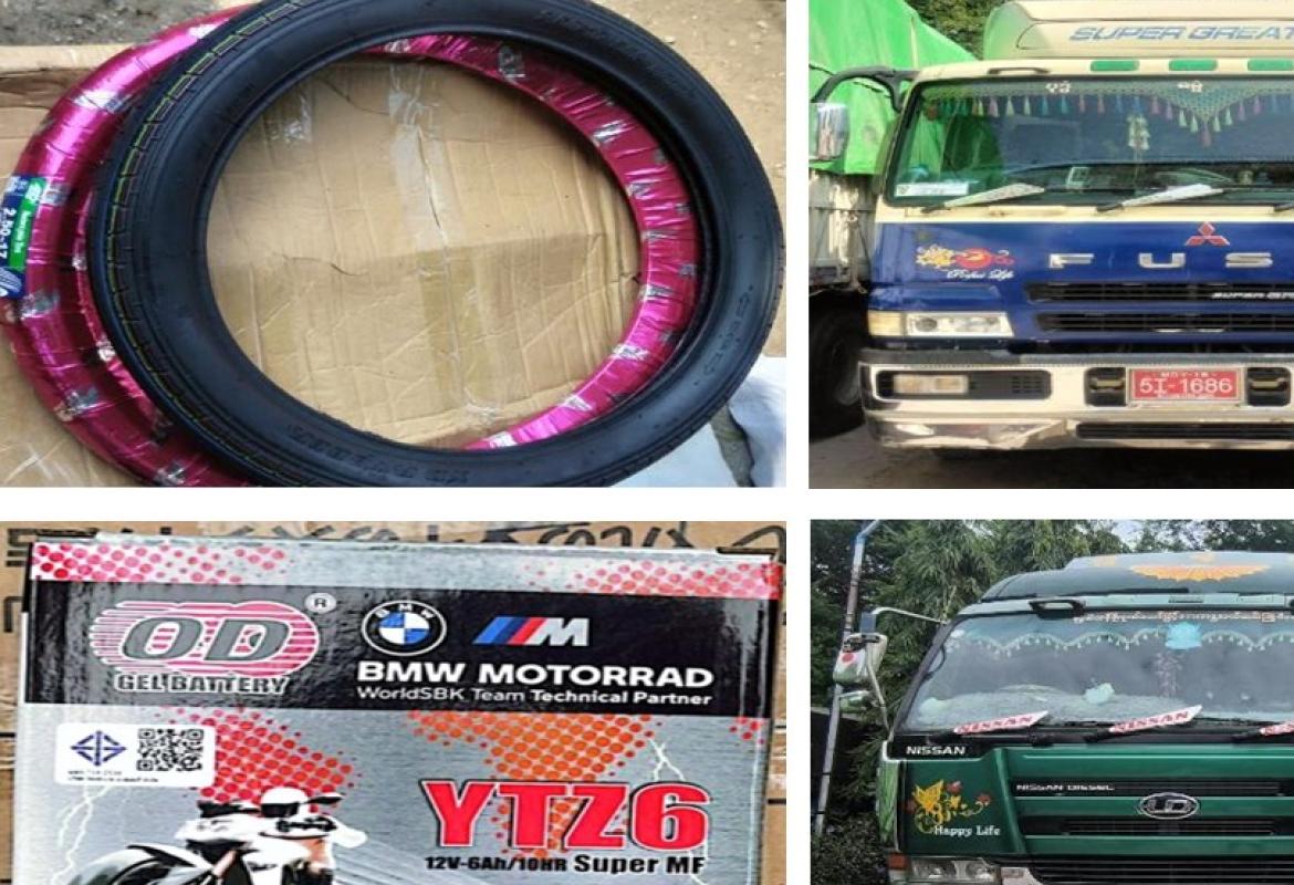 တရားမဝင် သစ်မျိုးစုံ၊ လုပ်ငန်းသုံးပစ္စည်းများ၊ လူသုံးကုန်ပစ္စည်းများ၊ ဆိုင်ကယ်အပိုပစ္စည်းများ၊ လိုင်စင်မဲ့ မော်တော်ဆိုင်ကယ်များနှင့် မော်တော်ယာဉ်များဖမ်းဆီးရမိ