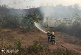 ဂန့်ဂေါမြို့အဝင်အနီးထိ တောမီးများ ကူးစက်လောင်ကျွမ်းလာသဖြင့် စနစ်တကျမီးငြှိမ်းသတ်ရ