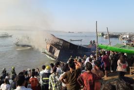 မန္တလေး ဧရာဝတီမြစ်အတွင်း မင်းကွန်း - မန္တလေးကူးတို့ရေယာဉ်တစ်စီး မီးလောင်မှုဖြစ်ပွားကာ လူ ၄ ဦး ထိခိုက်ဒဏ်ရာရရှိ