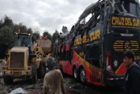 At least 16 people were killed and another 40 injured when a bus crashed on Monday morning into a number of other vehicles near the town of Caraveli in the Arequipa region of Peru, said Dember Munoz Lozada, head of Regional Health Management for Arequipa