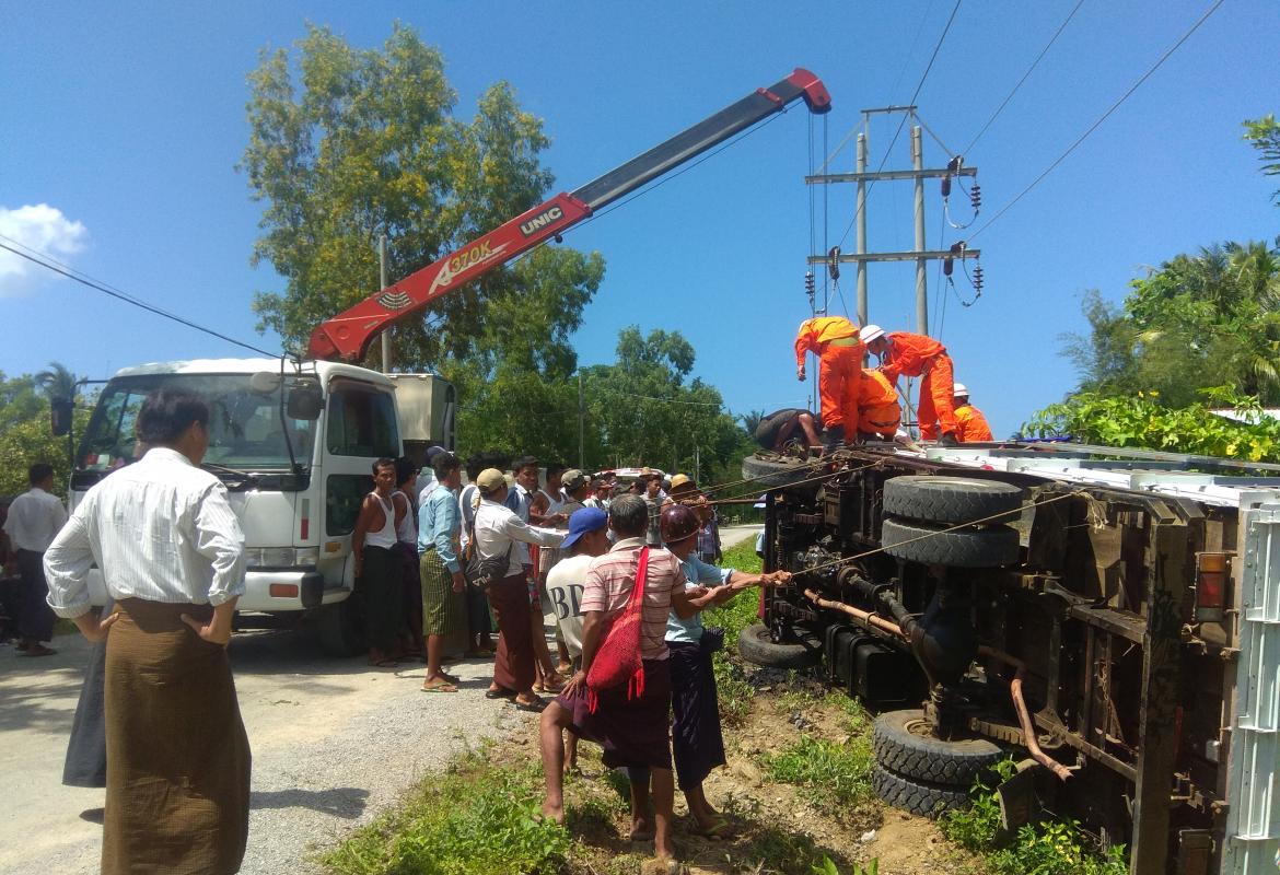 အလှူခံရန်ထွက်လာသောကားတစ်စီး လမ်းဘေးထိုးကျ တိမ်းမှောက် ၃ ဦးဒဏ်ရာရ