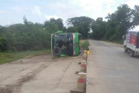 မလှိုင်မြို့နယ် သပြေပင်ကျေးရွာအနီး ရေကျော်ချောင်းတွင် စက်တင်ဘာလ ၂၅ ရက်နေ့ နံနက် ၂နာရီ ခွဲခန့်က ခရီးသည်တင် မှန်လုံယာဉ်မှာ မျက်နှာချင်းဆိုင် လာသောယာဉ်အား ရှောင်တိမ်းရာမှ ကားဘီးချော်၍ တိမ်းမှောက်မှုဖြစ်ပွားရာ ခရီးသည် (၁၃)ဦးဒဏ်ရာရရှိခဲ့ကြောင်း သိရ