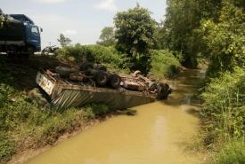 မြေသြဇာအိတ်များ တင်ဆောင်လာသော ၁၂ ဘီးယာဉ် လမ်းဘေးသို့ ထိုးကျတိမ်းမှောက်မှုဖြစ်ပွား