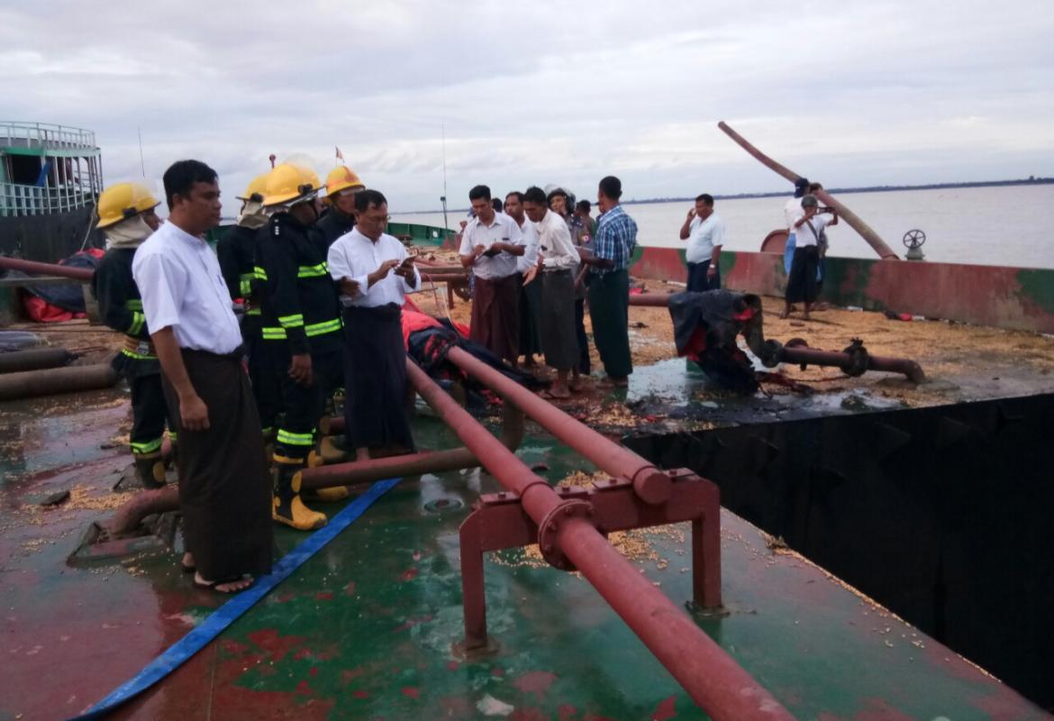 မြတ်မေတ္တာမွန် သင်္ဘောကျင်းအနီး ရပ်နားထားသော သင်္ဘောမှ ဂတ်စ်အိုးပေါက်ကွဲမှုဖြစ်