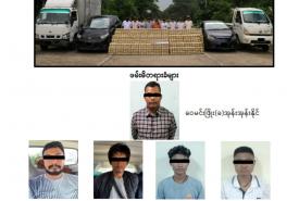 တရားမဝင် သစ်မျိုးစုံ၊ စားသောက်ကုန်ပစ္စည်းများ၊ လုပ်ငန်းသုံးပစ္စည်းများ၊ ယာဉ်အပိုပစ္စည်းများနှင့် မော်တော်ယာဉ်များ ဖမ်းဆီးရမိ