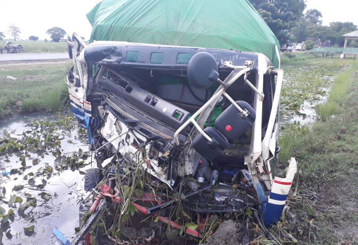 လမ်းဘေးတွင် ရပ်တန့်ထားသော ၆ ဘီးယာဉ်အား ၁၂ ဘီးယာဉ်မှ ဝင်တိုက်မိ၍ ယာဉ်မောင်းတစ်ဦး သေဆုံး