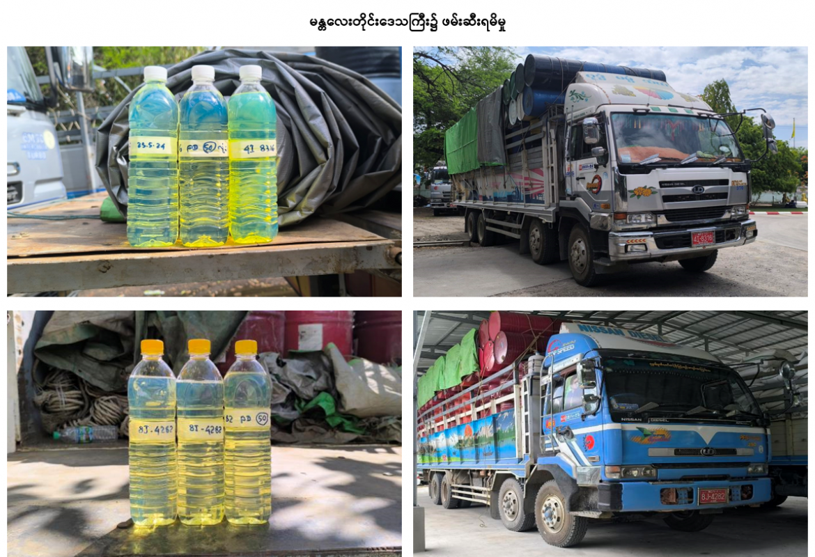 တရားမဝင် စက်သုံးဆီများ၊ စားသောက်ကုန်ပစ္စည်းများ၊ လုပ်ငန်းသုံးပစ္စည်းများနှင့် မော်တော်ယာဉ်များ ဖမ်းဆီးရမိ
