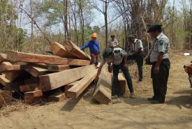 သစ်တောဉီးစီးဌာနသည် တရားမဝင်သစ်နှင့်သစ်တောထွက်ပစ္စည်းများ ရှာဖွေဖော် ထုတ်ဖမ်းဆီးလျှက်ရှိရာ သစ်တောဦးစီးဌာနမှဝန်ထမ်းများ၊
