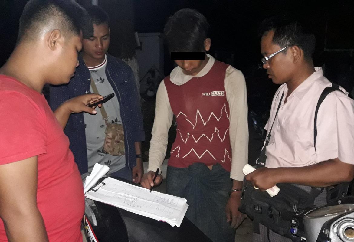 ပဲခူးတိုင်းဒေသကြီး ကျောက်ကြီးမြို့နယ် မုန်းမြို့(၄)ရပ်ကွက် အေးစန္ဒာလမ်းမပေါ်တွင် ဧပြီ ၂၁ ည ၁၁ နာရီခန့်က လူငယ်သုံးဦးအား မသင်္ကာ၍ စစ်ဆေးရာမှ-------