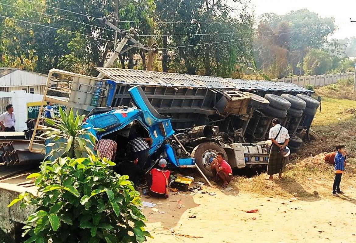 ရေတာရှည်မြို့အဝင်တွင် ယာဉ်မောင်းအိပ်ငိုက်ကာ ၂၂ ဘီးယာဉ်တိမ်းမှောက်