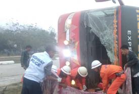 အမြန်လမ်းမကြီးတွင် ခရီးသည်တင်ယာဉ်တစ်စီး တိမ်းမှောက်မှုကြောင့် ၁၃ ဦး သေဆုံး