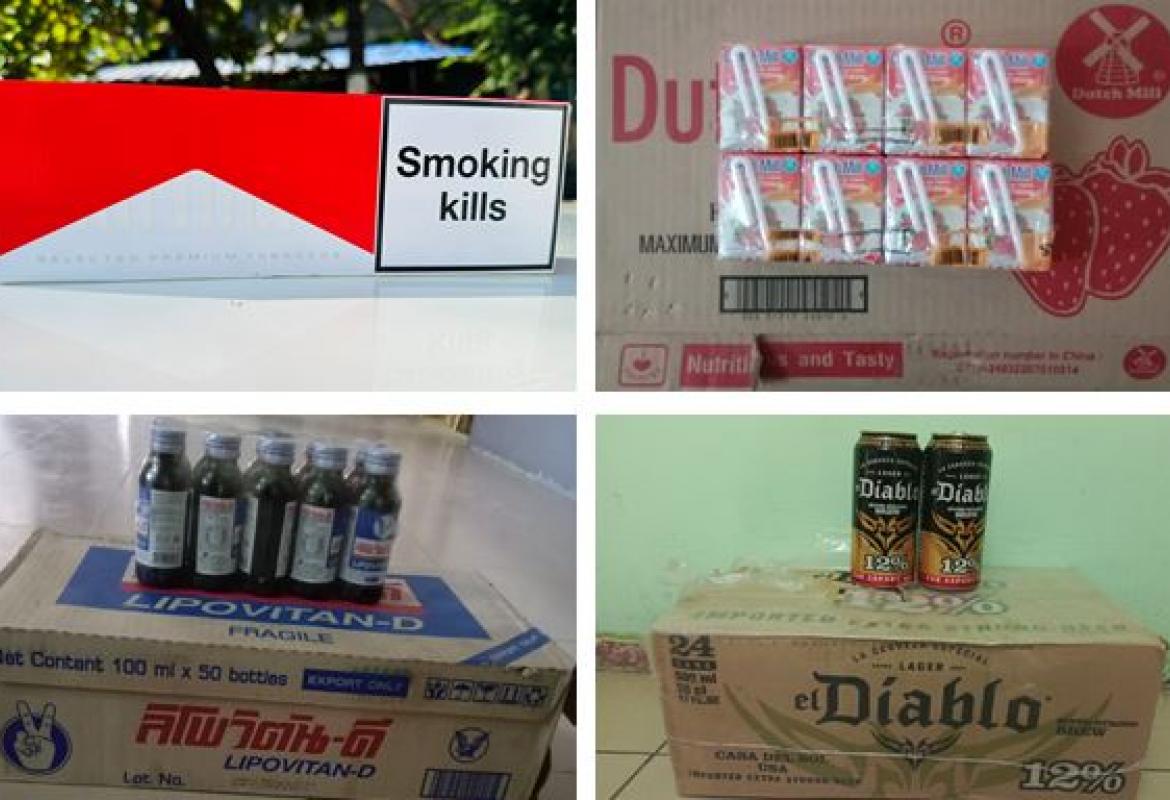 တရားမဝင် ၊ စားသောက်ကုန်ပစ္စည်းများ၊ လူသုံးကုန်ပစ္စည်းများ၊ လုပ်ငန်းသုံးပစ္စည်းများ၊ စက်သုံးဆီများ၊ မော်တော်ဆိုင်ကယ်နှင့် မော်တော်ယာဉ် ဖမ်းဆီးရမိ