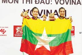 ဗီယက်နမ်နိုင်ငံ၌ အိမ်ရှင်အဖြစ် လက်ခံ ကျင်းပလျက်ရှိသည့် (၃၁) ကြိမ်မြောက် အရှေ့တောင်အာရှ အားကစားပြိုင်ပွဲများကို မြို့အသီးသီးရှိ အားကစားကွင်း/ အားကစားရုံများ၌ ကျင်းပလျက်ရှိရာ မေ ၁၈ ရက် ညနေပိုင်းက ဗီယက်နမ်နိုင်ငံ ဟနွိုင်းမြို့ရှိ Soc Son အားကစားရုံ၌ ဗိုဗီနမ် အားကစားနည်း အမျိုးသမီး နှစ်ယောက်တွဲ (သရုပ်ပြ) ပွဲစဉ်တွင် မခိုင်ဝါဖူးနှင့် မမေဟန်နီအောင်လွင် တို့က မြန်မာ နိုင်ငံအတွက် ဆဋ္ဌမမြောက် ရွှေတံဆိပ်ဆုကို ထိုက်ထိုက်တန်တန် ဆွတ်ခူးရရှိခဲ့ပြီး အမျိုးသမီး (-၅၅) ကီလိုတန်းတွင် မနှင်းသက်ဝေက ကြေးတံဆိပ်ဆုကို လည်းကောင်း၊ My Dinh National Stadium ပြေးခုန်ပစ် အားကစားနည်း မီတာ ၁၀၀၀၀ အမျိုးသမီးအပြေး ပြိုင်ပွဲတွင် မခင်မာဆယ်က ငွေတံဆိပ်ဆု ကို လည်းကောင်း၊