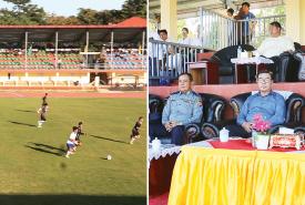 ဒုတိယဝန်ကြီး ဦးထိန်လင်း ပြည်နယ်ဝန်ကြီးချုပ်ဖလား အလွတ်တန်းဖိတ်ခေါ်ဘောလုံးပြိုင်ပွဲ ကြည့်ရှုအားပေး