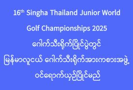 16th Singha Thailand Junior World Golf Championships 2025 ဂေါက်သီးရိုက်ပြိုင်ပွဲတွင် မြန်မာလူငယ် ဂေါက်သီးရိုက်အားကစားအဖွဲ့ ဝင်ရောက်ယှဉ်ပြိုင်မည်
