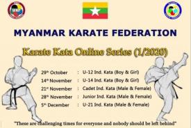 မြန်မာနိုင်ငံကရာတေးအဖွဲ့ချုပ်က ကျင်းပသည့် အွန်လိုင်းကရာတေး “ခတ” (၁/၂၀၂၀)၊ MKF Karate Kara Online Series (1/2020) ပထမနေ့ပြိုင်ပွဲကို အောက်တိုဘာ ၂၉ ရက်က ကျင်းပခဲ့ကြောင်း အဖွဲ့ချုပ်မှသိရ.....