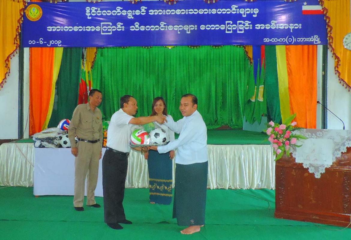 ကျောင်းသား၊ကျောင်းသူများအား အားကစားဖွံ့ဖြိုးတိုးတက်စေရေးအတွက်ရည်ရွယ်ဟောပြောပြီး အားကစားပစ္စည်များထောက်ပံ့