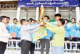တောင်ငူခရိုင်စီမံခန့်ခွဲရေးနှင့် အုပ်ချုပ်ရေးကော်မတီဥက္ကဋ္ဌဖလား အမျိုးသမီးဘောလုံးပြိုင်ပွဲ ဆုချီးမြှင့်ပွဲ ကျင်းပ