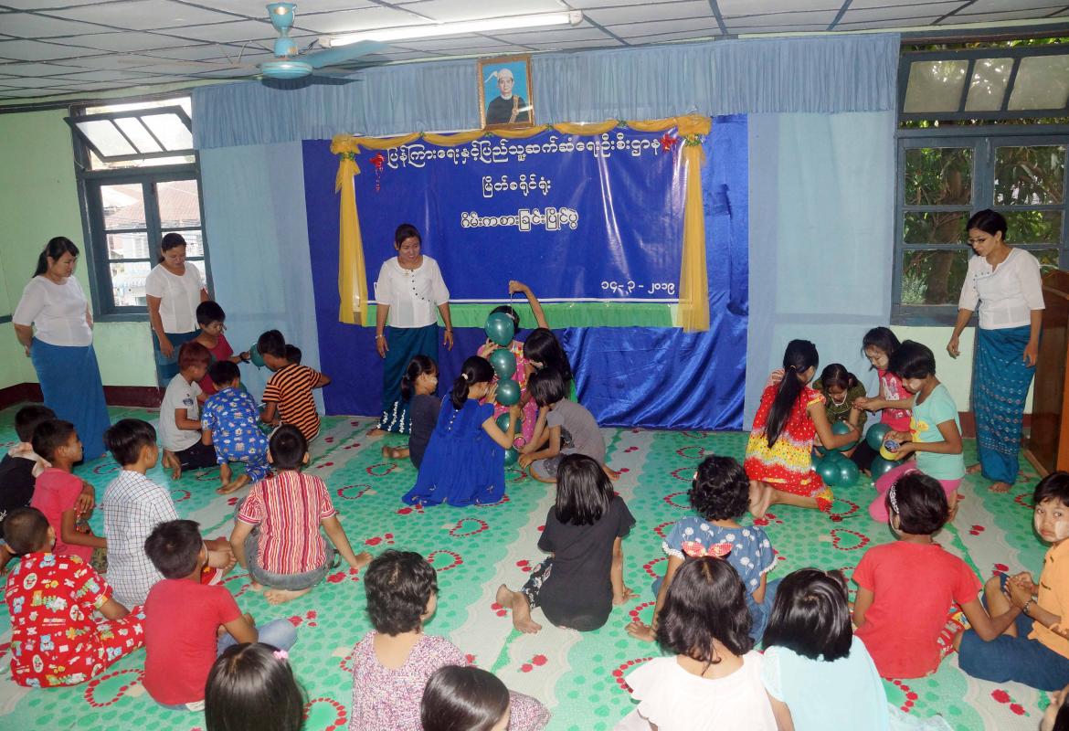 မြိတ်လူထုအခြေပြုဗဟိုဌာနတွင် ကျောင်းသားကျောင်းသူလေးများ တပျော်တပါး ဂိမ်းကစား