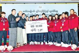 ၂၀၂၅ အာဆီယံအမျိုးသမီးချန်ပီယံရှစ်ပြိုင်ပွဲ၌ ဒုတိယဆုရရှိခဲ့သည့် မြန်မာ့လက်ရွေးစင် အမျိုးသမီးဘောလုံးအသင်းအား ဂုဏ်ပြုပွဲအခမ်းအနားကျင်းပ