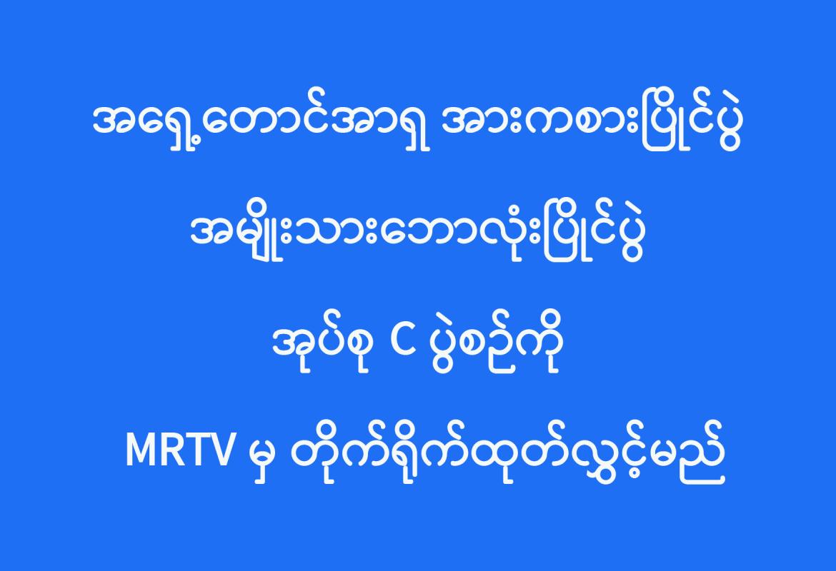 အရှေ့တောင်အာရှ အားကစားပြိုင်ပွဲ အမျိုးသားဘောလုံးပြိုင်ပွဲ အုပ်စု C ပွဲစဉ်ကို MRTV မှ တိုက်ရိုက်ထုတ်လွှင့်မည်