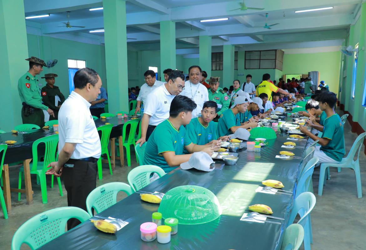 ဒုတိယဝန်ကြီး ဦးထိန်လင်း အမျိုးသားအားကစားပွဲတော်တွင် ပါဝင်ယှဉ်ပြိုင်ကြမည့် ပြည်နယ်နှင့် တိုင်းဒေသကြီး အားကစားသမားများ၏ တည်းခိုဆောင်များနှင့် နေထိုင်စားသောက်မှုများ ကြည့်ရှုစစ်ဆေး