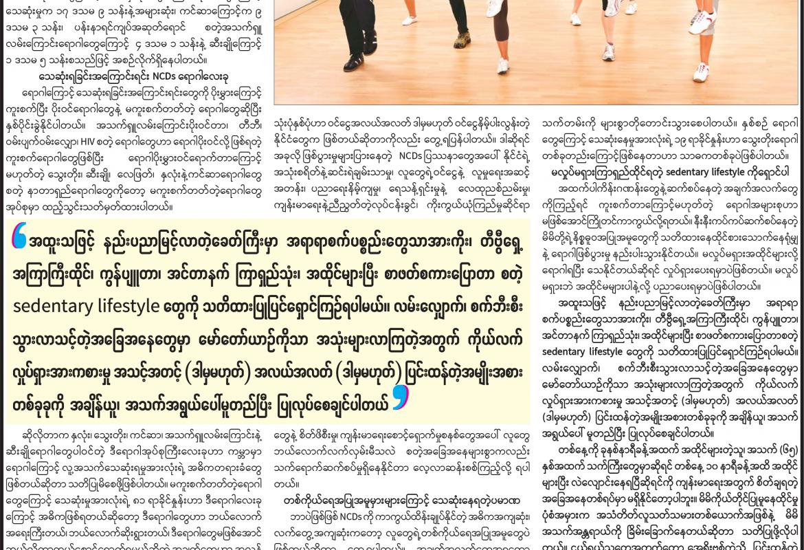 မိမိနေထိုင်မှုပုံစံအမှား၊ အသံတိတ်လူသတ်သမားရန်ကို ကိုယ်လက်လှုပ်ရှား လေ့ကျင့်ခန်းဖြင့် ကာကွယ်ပါ